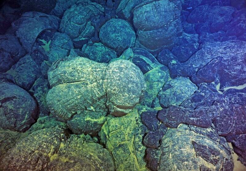 Onderzees gevormde kussenbasalt langs de mid-oceanische rug in de Atlantische oceaan.