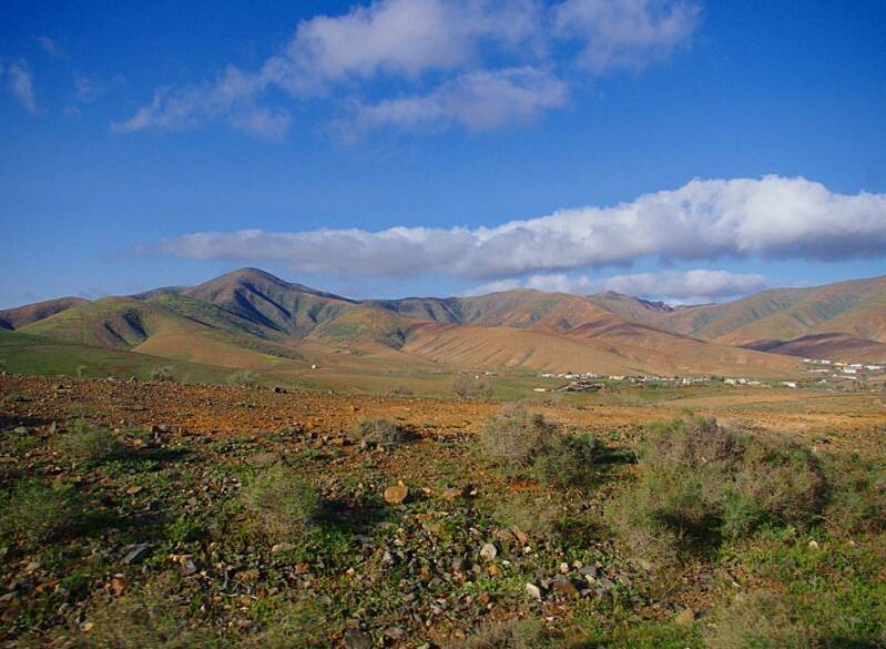 Vanaf Morro de Veloso naar het noorden kijkend heeft men een goed uitzicht over het oude het massief van Betancuria. Dit gebergtemassief vormt het restant van een enorme basaltische schildvulkaan, die lang geleden het centrale deel van Fuerteventura domineerde.