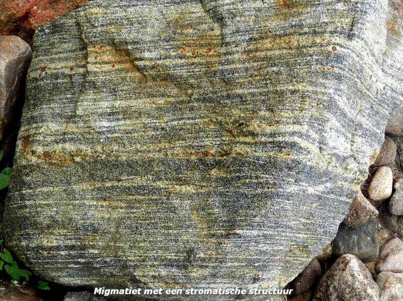 Migmatiet met een stromatische structuur - Zwerfsteen van Borger (Dr.)