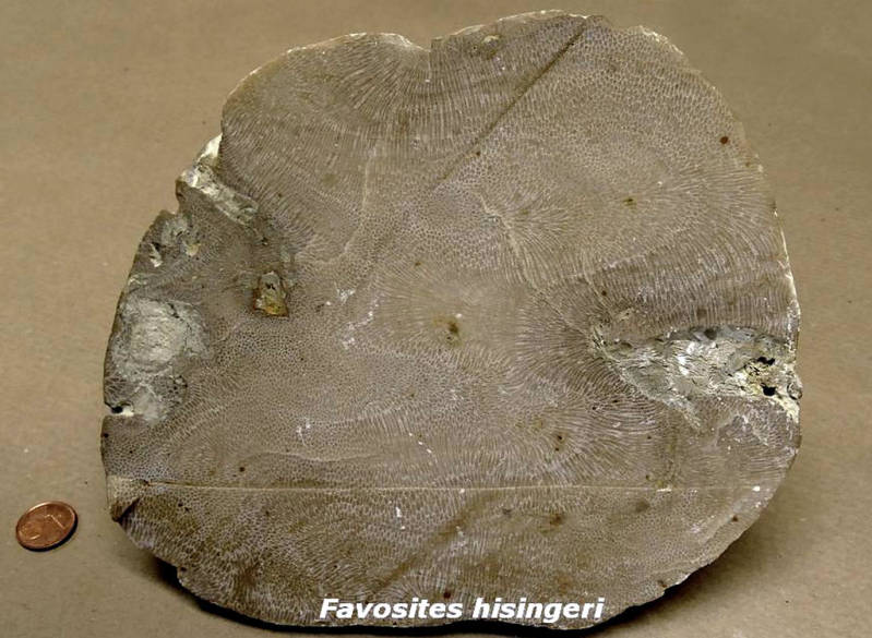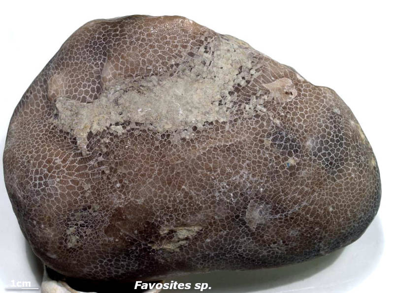 Op de foto is de deels afgesleten en verkiezelde onderzijde van een halfbolvorige kolonie van Paleofavosites te zien. Paleofavosieten vertonen meer dan favosieten secundaire verkiezelingsverschijnselen.