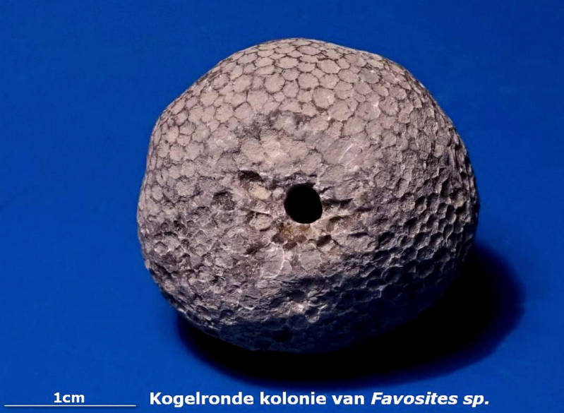 Bij Haren (Gr.) is in de keileem een klein, ca. 2,5cm groot, kogelrond exemplaar van een favosiet gevonden. De aanwezigheid van wandporiën, maakt duidelijk dat het om Favosites gaat. Bijzonder aan het fossiele koraaltje, is dat de ronde vorm oorspronkelijk moet zijn. Van afslijting als gevolg van het ijstransport is geen sprake. Rondom zijn de meeste corallietopeningen gevuld met grijsachtige mergelige kalk, die bij het schoonmaken enigszins kon worden weggeborsteld. Hierdoor werden de corallietwandjes duidelijker zichtbaar.