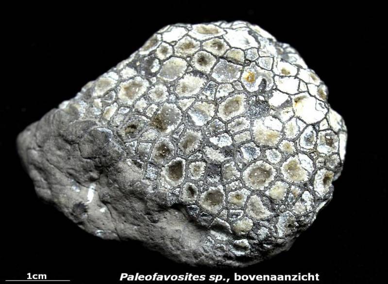 Bovenzijde met 'corallieten/ die polygonale doorsneden bezitten.