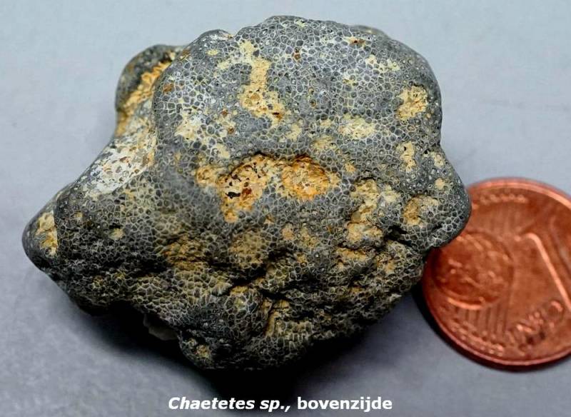 Deze koraalspons is een nog levende verwant van fossiele chaetetiden alsLamottiaenChaetetipora, waarvan fossielen in het oosten van ons land in het oostelijk grind gevonden worden. Het kalkskelet vanAcanthochaetetesis bezet met mameloonachtige bultjes met daarop een stervormig structuur. Vergelijkbare sterpatronen en bultjes komen we ook tegen bij sommige Paleozoïsche bryozoën (Monticulipora) en stromatoporen. Ze markeren uitstroomopeningen.Acanthochaeteteskomt voor in de Indische en Grote Oceaan.