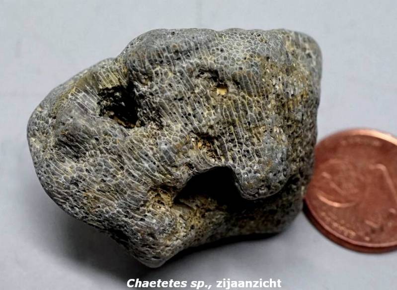 Chaetetes milleporaceus, zijaanzicht kolonie