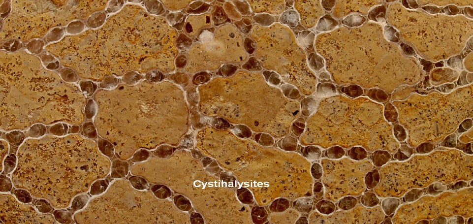 Aan kolonie-oppervlakken van favosieten is goed te zien dat de afzonderlijke koraalbuisjes (=corallieten) dicht opeen staan en als gevolg daarvan hoekige doorsneden bezitten.