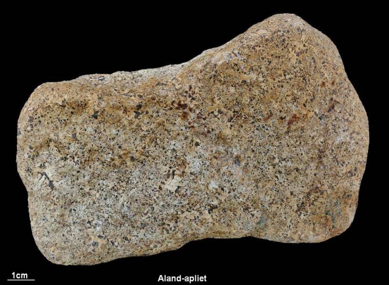 Als zwerfsteen is Aland-apliet volstrekt niet zeldzaam. Soms komen we zwerfstenen tegen waarin het gangkarakter (spleetvulling) van de apliet duidelijk zichtbaar is.