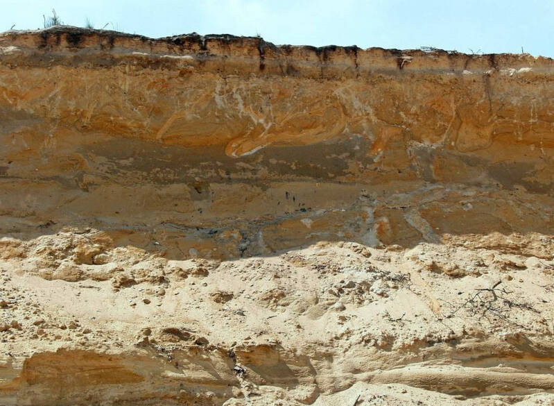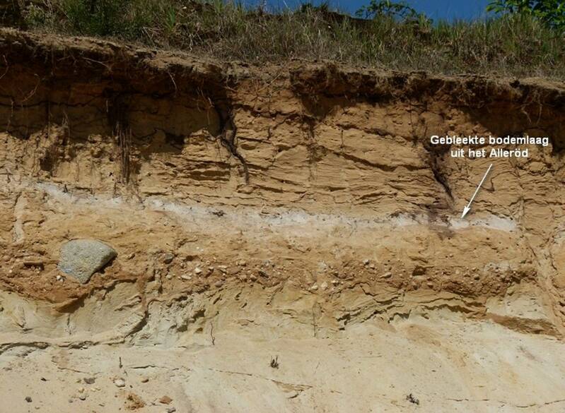 In het dekzandprofiel is een opmerkelijke band met lichter gekleurd zand zichtbaar. Deze ca. 10-15 cm dikke laag markeert een oude uitgeloogde en gebleekte bosbodem uit het Alleröd. Het Alleröd was een milde klimaatfase op het laatst van de Weischsel-ijstijd. De gemiddelde zomertemperatuur bedroeg toen ca. 13 graden, voldoende om bosgroei mogelijk te maken. Deze gebleekte laag wordt ook wel de "Laag van Usselo' genoemd. Bij deze plaats in Overijssel werd deze gebleekte bosbodem voor het eerst ontdekt.