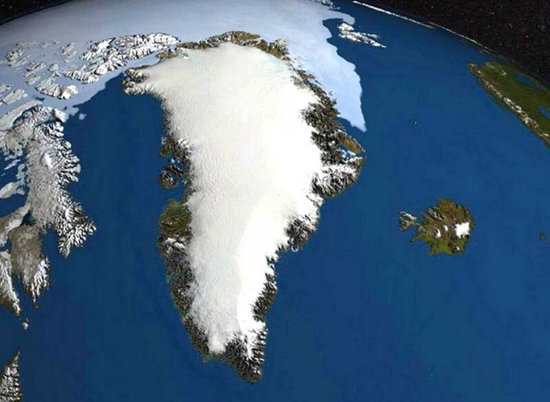 Zo zou Groenland er uit zien als de enorme ijskap zou zijn weggesmolten. Door het enorme gewicht van de ijsmassa is het centrale deel van Groenland in de aardkorst weggedrukt. Zonder ijsbedekking zou het centrale deel van Groenland veranderen in een enorm groot met smeltwater gevuld meer!