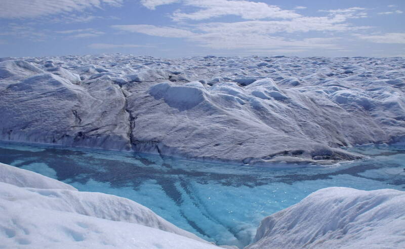 In de zomermaanden ontstaan op de ijskap van Groenland enorme smeltwatermeren. Sommige hebben een inhoud van verscheidene kubieke kilometers water. Via spleten of gletsjerrivieren stroomt dit smeltwater naar zee. De gedachte dat door van grote hoogte neerstortend smeltwater in de Elster-ijstijd diepe erosiegeulen ontstaan zouden zijn, blijkt niet realistisch.