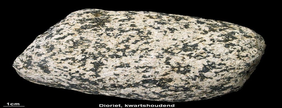 Sommige granieten zijn makkelijk leesbaar. Het gaat bij het herkennen van gesteenten nagenoeg altijd om de bestanddelen. Welke bouwstenen zijn er aanwezig?
