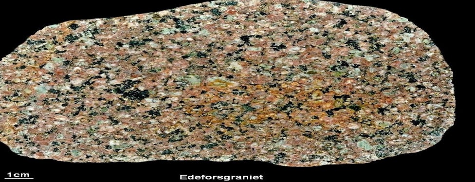 De graniet op de foto komt hoogstwaarschijnlijk uit Zuid-Zweden. Zwerfsteenverzamelaars noemen dit graniettype Halen-graniet.