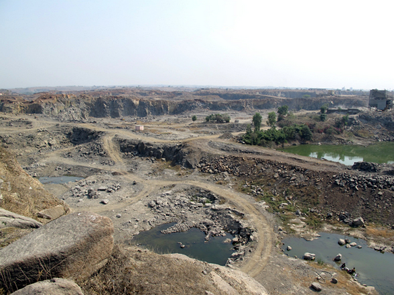 In de wijde omgeving van Bombay en Poona in India wordt in talrijke grote steengroeven basaltgesteente gewonnen, zoals hier bij Wagholi. Deze groeve staat bekend om zijn prachtige diepblauwe kristallen van het mineraal cavansiet.