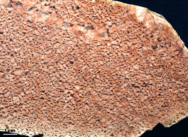 Schriftgraniet, gezaagd oppervlak - Zwerfsteen van Schoonloo (Dr.)