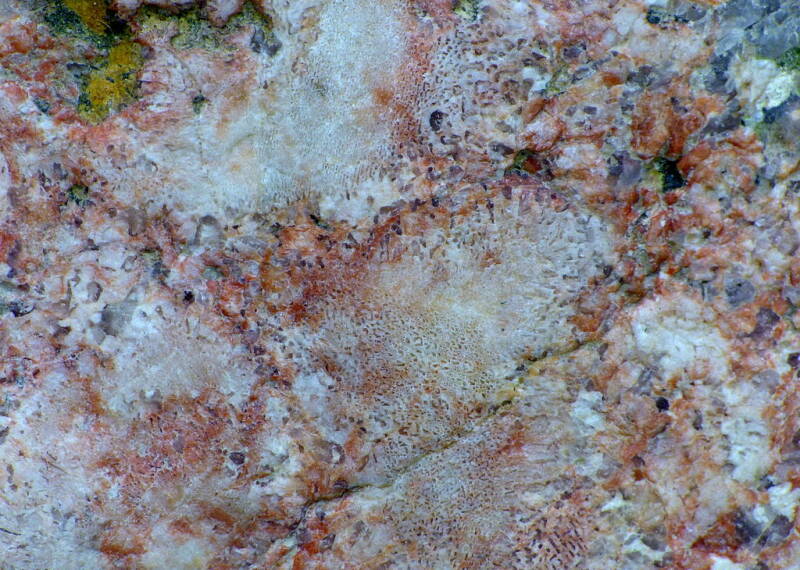 De kwarts-veldspaatvergroeiingen zijn niet alleen zeer klein. Onder de loep vormen ze een fijn type schriftgraniet.