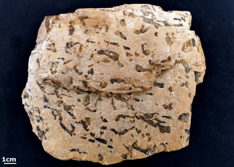 De grijze Balka-zandsteen in de groeve bij Limensgade toont op de laagvlakken allerlei fossiele golfribbelpatronen. De zandsteen is destijds afgezet in een zeer ondiep zeegedeelte.