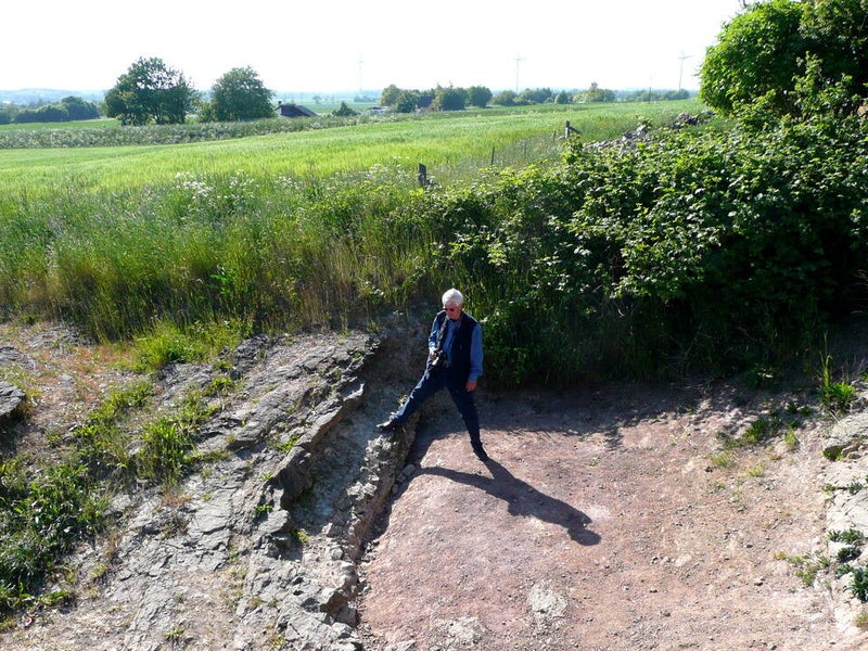 Bij Limensgade, zuidelijk van Aakirkeby op Bornholm, ligt een verlaten zandsteengroeve in Vroeg-Cambrische grijze Balkazandsteen. De grens tussen de rand van het oercontinent Baltica en de veel jongere zandsteen is scherp. De benen overbruggen 1,2 miljard jaar!