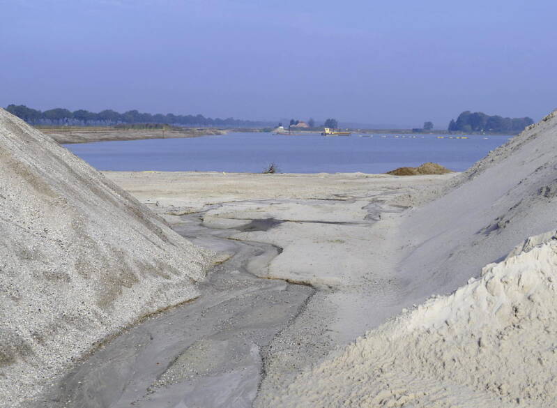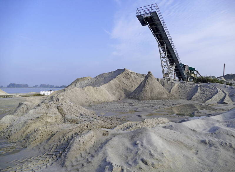 Het Pleistocene rivierzand wordt van vele meters diepte opgezogen. Het is opvallend wit van kleur. Het percentage kwarts in het zand is zo hoog dat van kwartszand gesproken mag worden.