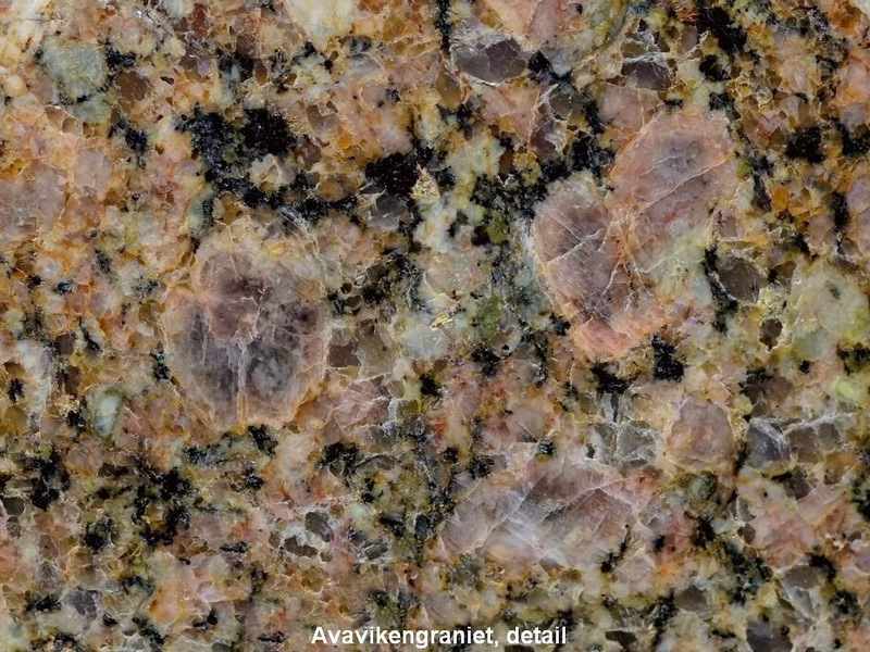 Onder Norrland-granieten valt Avaviken-graniet op door het grote aantal, tot 1,5 cm grote, meest afgerond hoekige tot rondachtige kaliveldspaten. Daarnaast komen verspreid in het gesteente bleker getinte, grijze tot grijswitte veldspaten voor die ruit- tot spoelvormig zijn. Hiermee laat Avaviken-graniet de verwantschap met Sorsele-graniet zien.